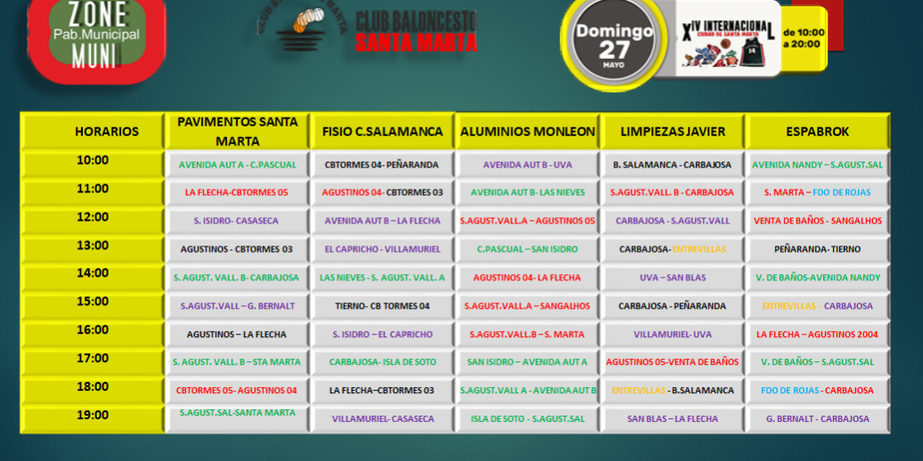 May242018Basket Inf y Cadete Calendario Categoría: Basket Inf y Cadete CalendarioPor adminmayo 24, 2018Deja un comentario Autor: admin Navegación entre publicacionesAnteriorPublicación anterior:PequeBasket sólo Sábado 26, Zona Miguel HernándezSiguientePublicación siguiente:Basket Infantil y Cadete Sábado 26, Zona Pab. Municipal. RevisadoRelated PostsBasket Infantil y Cadete: Normas de Juegomayo 24, 2018Basket Infantil y Cadete Sábado 26, Zona Pab. Municipal. Revisadomayo 24, 2018
