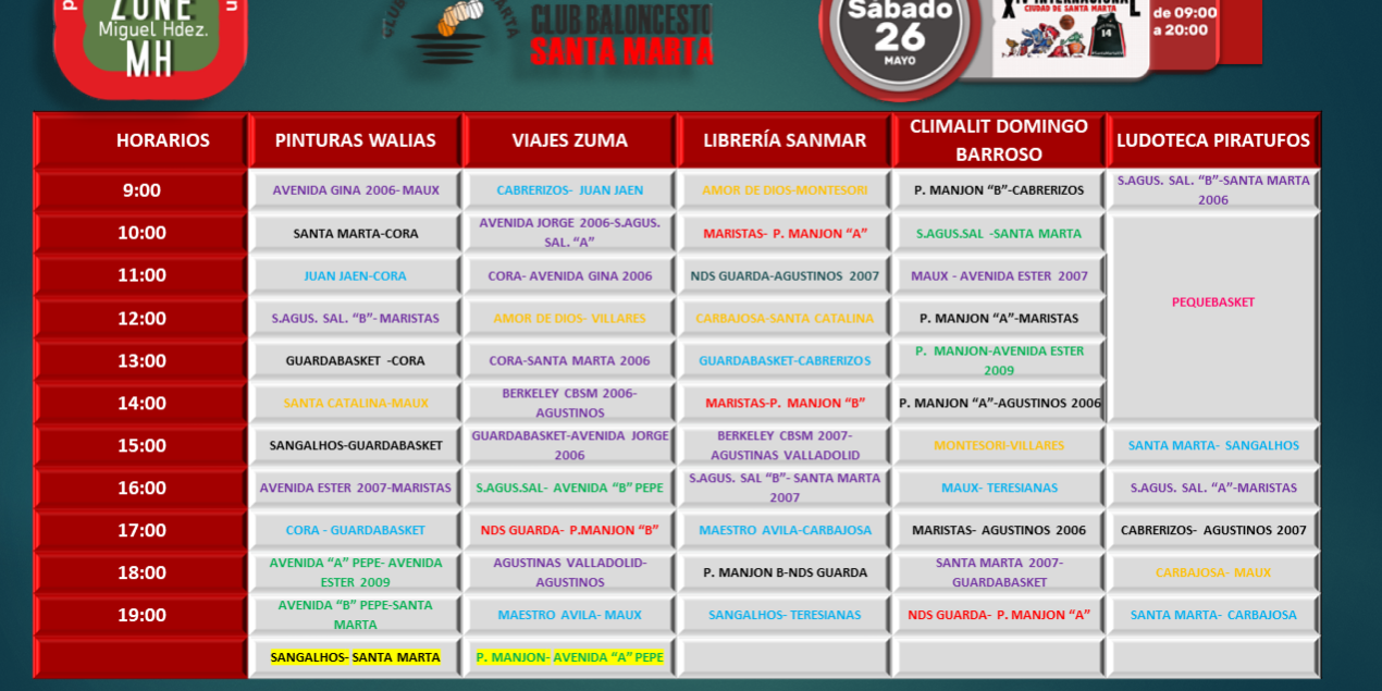 May242018MiniBasket Calendario Categoría: MiniBasket CalendarioPor adminmayo 24, 2018Deja un comentario Autor: admin Navegación entre publicacionesAnteriorPublicación anterior:MiniBasket Domingo 27, Zona Miguel Hernández. RevisadoSiguientePublicación siguiente:Domingo 27. Información por Horario y ZonaRelated PostsMiniBasket: Normas de Juegomayo 24, 2018MiniBasket Domingo 27, Zona Miguel Hernández. Revisadomayo 24, 2018